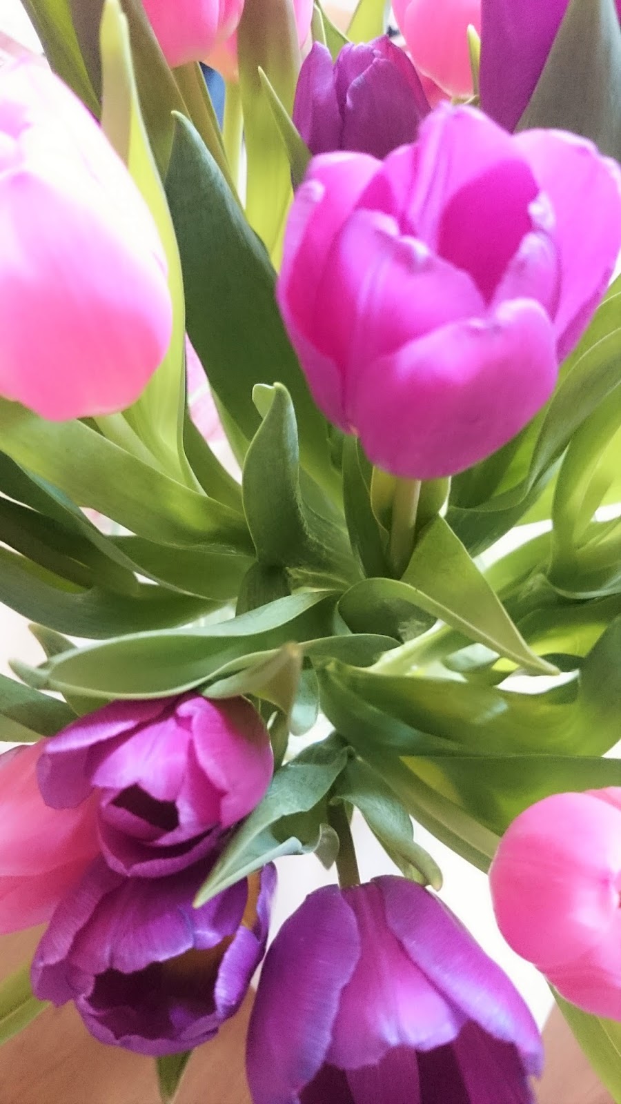 Ik weet trouwens niet waar ik last van heb, maar ik heb enorm veel zin om te poetsen de hele tijd (nee, ik ben niet zwanger hoor, whahaha) ik denk dat het gewoon voorjaarskriebels zijn ;) Maar ik heb de badkamer gewit en alles geschrobt en geboend en gepoetst en gedaan. En de keuken ook nog, en dan niet gewoon schoongemaakt, maar echt echt echt geboend, terwijl ik niet eens zo heel erg huishoudelijk ben ingesteld. En de boekenkast uitmesten en de kledingkasten en slaapkamers doen en de ramen lappen staan ook nog in de planning voor deze week. Tussen alle bedrijven door, want eigenlijk ben ik te druk. Maar als het zo blinkend is geeft het zo'n goed gevoel :) Én mag ik mezelf belonen met een bos bloemen!